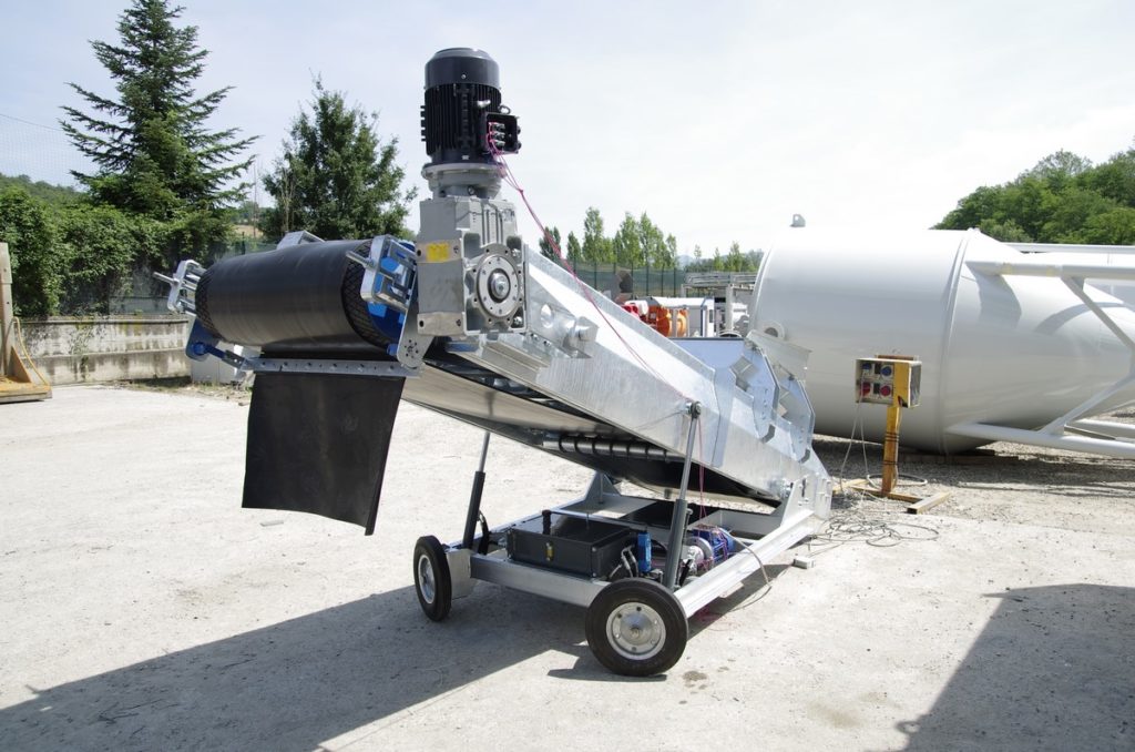 Nastri trasportatori adatti al convogliamento di aggregati o granulati, possono essere realizzati nelle più varie larghezze e lunghezze, con portate variabili da 80-100 m³/h fino a oltre 1000 m³/h.