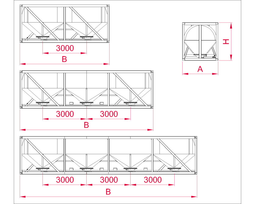 Impiegato anche come silo-navetta nei progetti di tunneling, può essere facilmente ancorato al rimorchio o al carro ferroviario tramite gli appositi blocchi d’angolo.
