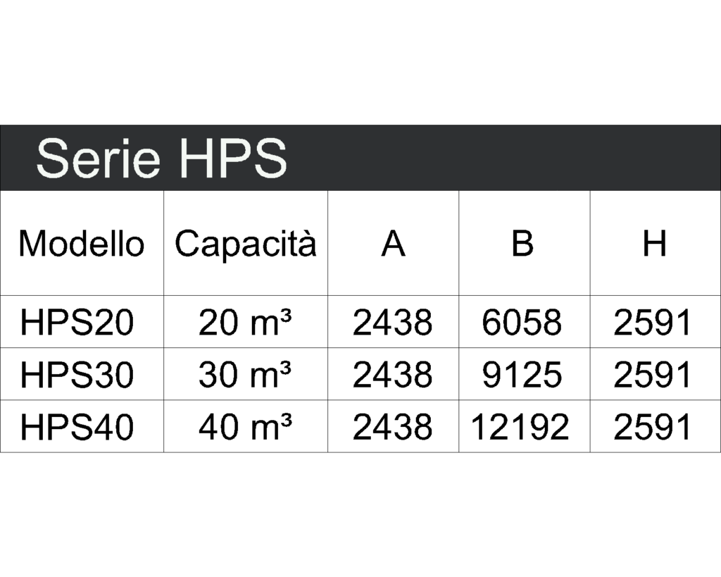 Qui di fianco trovate alcuni dettagli tecnici riguardanti i nostri silos orizzontali pneumatici HPS con relative misure e capacità suddivise per codice prodotto. Cliccate sulle immagini per visualizzare l’ingrandimento.