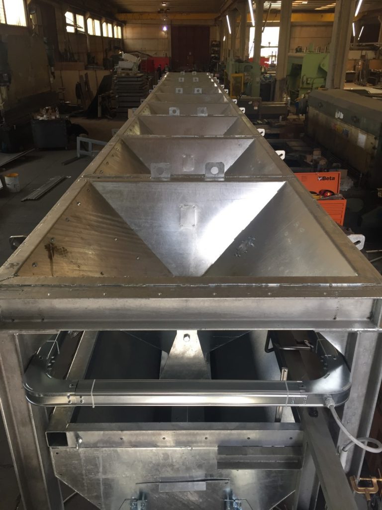 Le tramogge sono normalmente zincate a caldo, al fine di proteggere la macchina da tutti gli urti tipici del lavoro di cantiere, ma sono disponibili anche verniciate, su richiesta; possono inoltre essere personalizzate nell’applicazione di eventuale logo o marchio del cliente stesso.